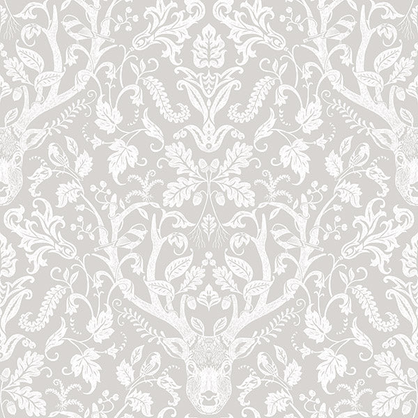 View Chesapeake SKU# 3118-12701 Collection Birch & Sparrow pattern name Kiwassa Antler Damask color Taupe. Theme Animals. Enjoy this extraordinary wallpaper. Whimsical meets lodge with this enchanting white and light taupe wallpaper. Forest fauna wrap and curl about a stag's antlers in this damask design, while its hand drawn design emphasizes its fanciful style. Kiwassa is a prepasted, easy walls wallpaper.. Cuttings available online. Fast Shipping Mahone's has been Family owned since1969.