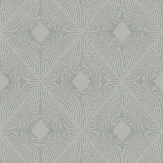 View Antonina Vella Wallpaper Pattern number MD7132 pattern name Harlowe from the collection Modern Metals Second Edition. Enjoy this impeccable wallpaper. Radiating beams of metal expand from a small diamond shape to form a shimmering aura against colorful grounds in the pattern Harlowe, shown in fog grey with silver metallic. This Harlowe Wallpaper measures approximately 20.8 inches wide by 33 feet long, measuring approximately 57.2 square feet per roll. The long awaited follow-up to the popular first release, Modern Metals Second Edition energizes contemporary spaces with charismatic visual artistry defined by the allure of luminous metallic. Samples available. Fast Shipping Mahone's Wallpaper has been family owned in Lynchburg Va since 1969.
