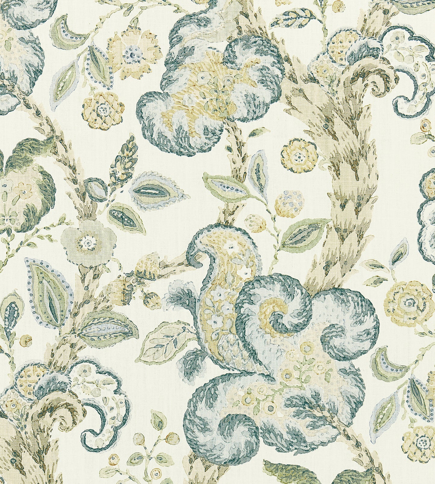 Sample - Scalamandre Fabric - SC 000116603, Cumbria Hand Block Print Aquamarine On Ivory